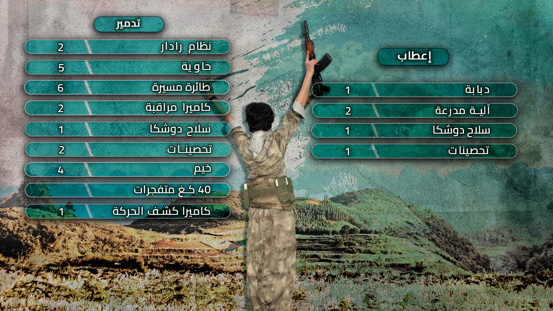 المعدات والأسلحة التي تم تدميرها |