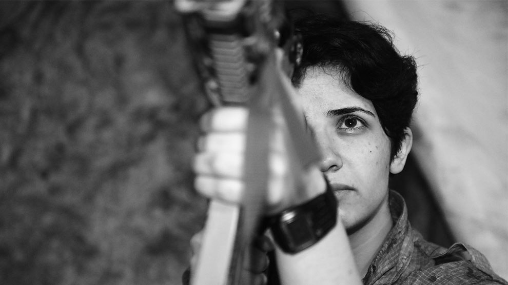 المقاتلة العربية هيلين كوباني، التي تأثَّرَتْ بمقاومة النساء الكرديات ضدَّ داعش وانضمَّتْ إلى...