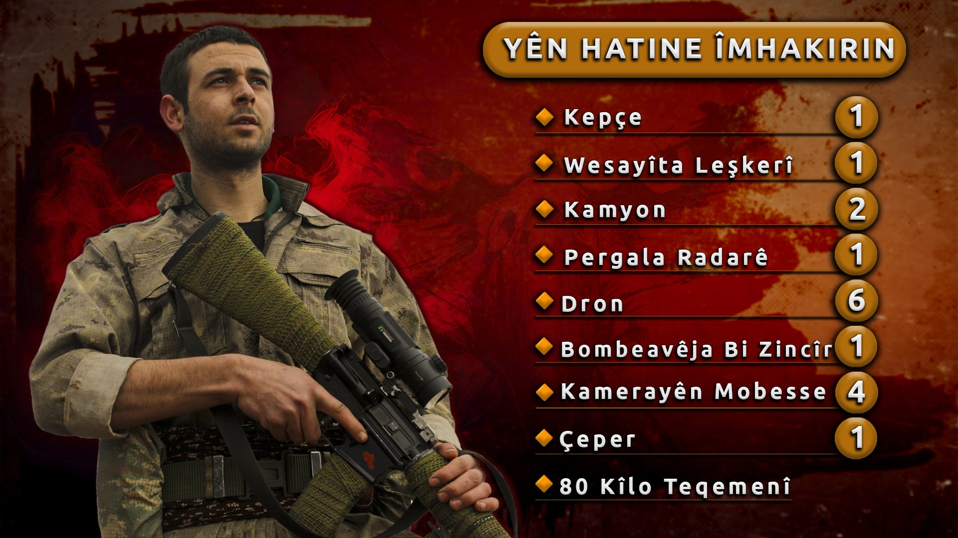 Di meha Cotmehê de ku fermandara me ya pêşeng û rûmeta me ya azadiyê hevrê Bêrîtan - Gulnaz Karataş şehîd bû û di heman demê de artêşa me ya jinê ya azad YJA Star ava bû, têkoşîna gerîla bi rengekî hîn mezin dewam kir. Gerîlayên me dan ser şopa hevrê Bêrîtan û hemû şehîdên meha Cotmehê û çalakiyên bi bandor kirin.