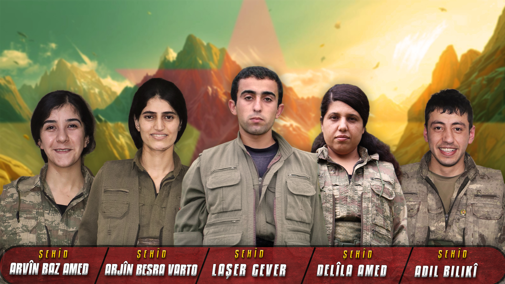 Hevrêyên me Laşer, Avrîn, Arjîn, Delîla û Adil ji bo bibin hêviya azadiya gelê me tevlî nava refên PKK’ê bûn. Li çiyayên Kurdistanê xwe bi îdeolojiya Apoyî jinûve avakirin û bûn şoreşgerên profesyonel. Wan, ji bo ku ji doza azadiya gelê me re pêşengî bikin, bi fedekariyek mezin tevlî bûn û bi hezkirinek mezin çûn ser her peywirê. Bi coş û moraleke mezin tevlî xebatan bûn. Ruhê milîtanên Apoyî di kesayeta xwe de serwer kirin û bûn gerîlayên jêhatî û dilpak. Li ser gerîlatiya modernîteya demokratîk lêhûrbûn, bi hewldan û dilsozî gihiştin asteke bilind. Di salên têkoşînê yên zehmet de bêyî dudilî berpirsyarî hildan ser milên xwe û li dijî êrîşên dijmin li ber xwe dan. Li dijî dewleta Tirk a ku dixwest îradeya Gerîlayê Azadiya Kurdistanê bişkîne û êrîşên qirker li ser gelê me pêk bîne, wan bi sekn û tevlîbûna xwe îradeya Apoyî ya serketinê îsbat kirin. Di şert û mercên herî giran de jî wan li pêşiya tevlîbûna xwe tu astengî nasnekirin û serketin esas girtin. Wan bi tevlîbûna xwe û sekna xwe mîrateyek mezin a têkoşînê ji bo me hiştin.
