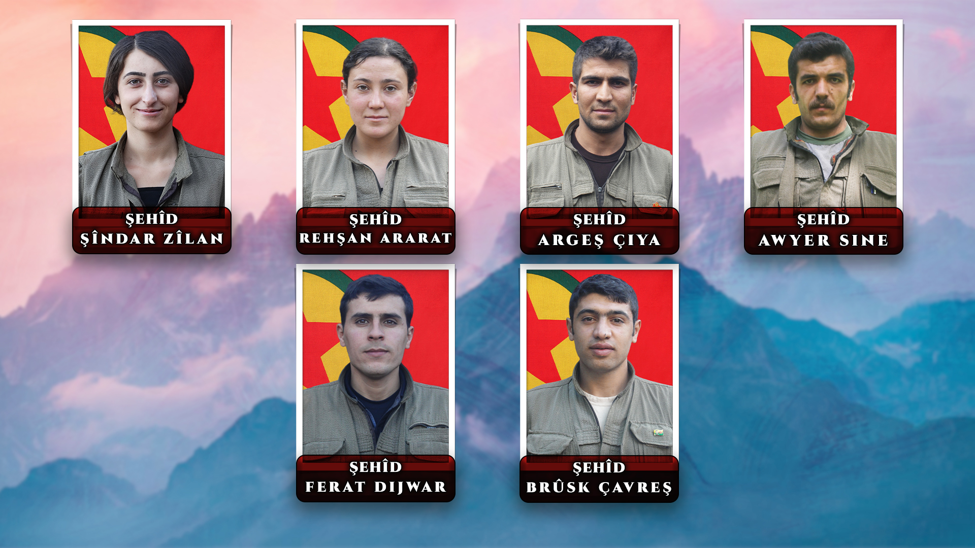 Hevrêyên me Rehşan, Şîndar, Ferat, Argeş, Awyer û Brûsk ku li hemberî jiyana koletiyê ya li gelê me dihate ferzkirin serî hildan, tevlî nava têkoşîna me ya azadiyê bûn û di her kêliyê de bi rengekî fedaî jiyan û têkoşiyan, weke ewladên herî hêja û rûyê pak ê gelê me cihê xwe di dîrokê de girtin. Zanîbûn ku azadî bê berdêl nabe, lewma ji bo têkoşîna xwe bi ser bixînin bi şev û roj, bêrawestan û bêyî li hêviya tiştekî bimînin têkoşiyan. Van hevrêyên me yên hêja bi jiyana xwe ya dilnizm, bi kesayetiya xwe ya ji dil û bi sekna xwe ya asî ya ku li ber dijmin serî neditewandin, li Kurdistanê bûn afirînerên jiyana azad û nû ku bi pêşengiya jin û ciwanan hate afirandin. Di serî de jin û ciwan em bang li her beşên gelê xwe dikin ku van şehîdên me yên leheng li her cihê ku lê ne bi bîr bînin û jiyana nû ya ku wan afirandine fêhm bikin.