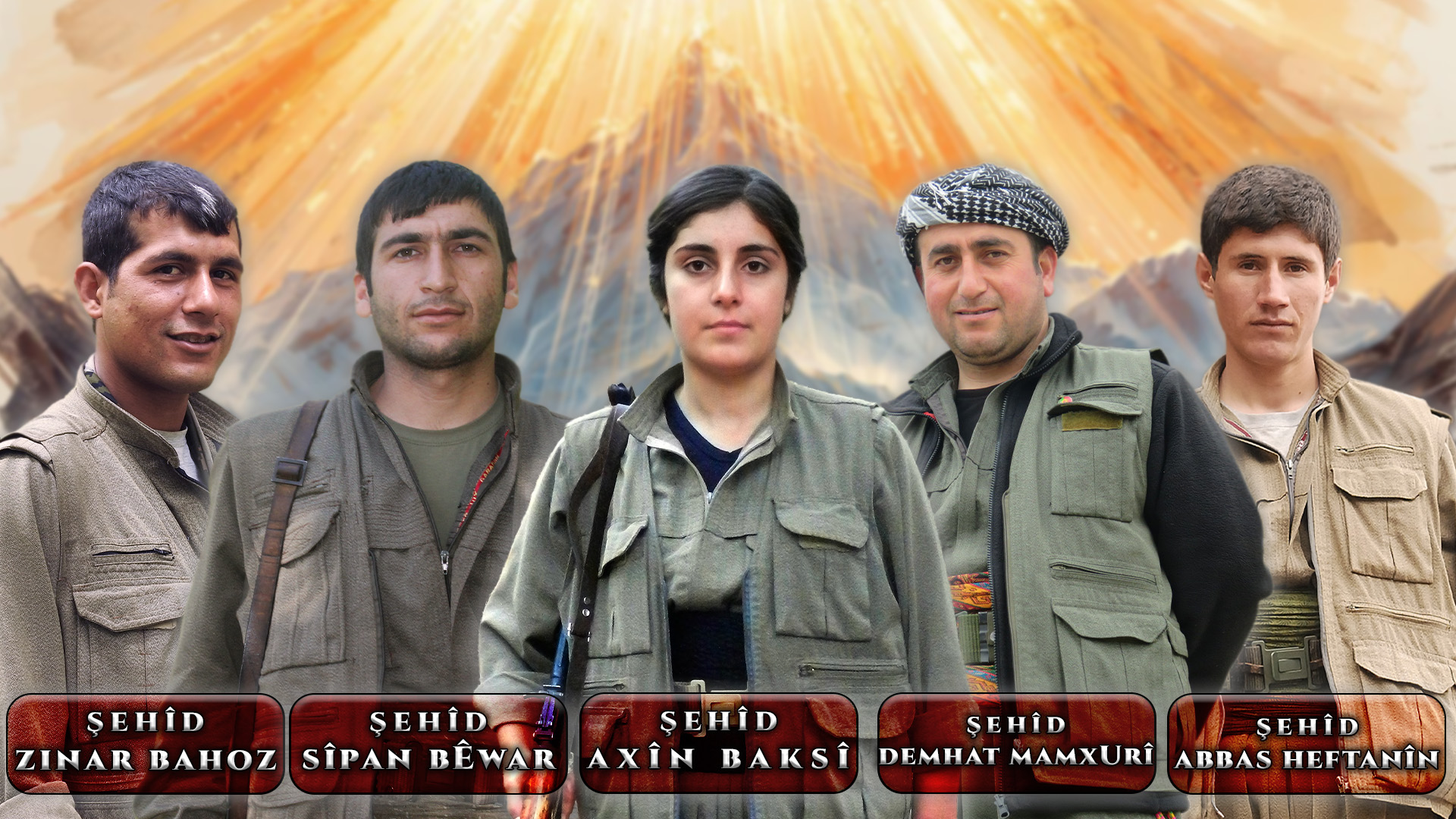Kürt halkının yiğit kahramanları olan Abbas, Axîn, Demhat, Sîpan ve Zinar yoldaşımızın değerli aileleri başta olmak üzere tüm yurtsever Kürt halkımıza başsağlığı diliyor, şehitlerimizin amaçlarını zafere taşıyana kadar durmaksızın mücadele edeceğimizin sözünü veriyoruz.