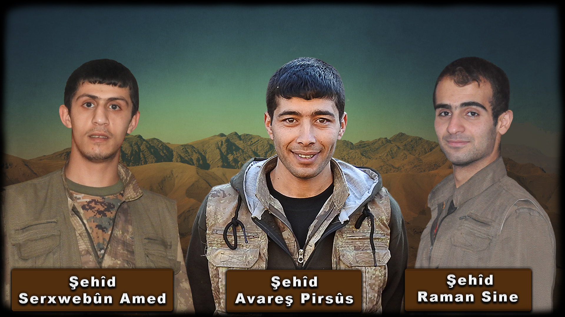 Yüksek cesaretleriyle düşmanı korkutan ve düşmana darbe vurarak şehadete ulaşan yoldaşlarımızın değerli ailelerine ve yurtsever Kurdistan halkımıza baş sağlığı diliyoruz.