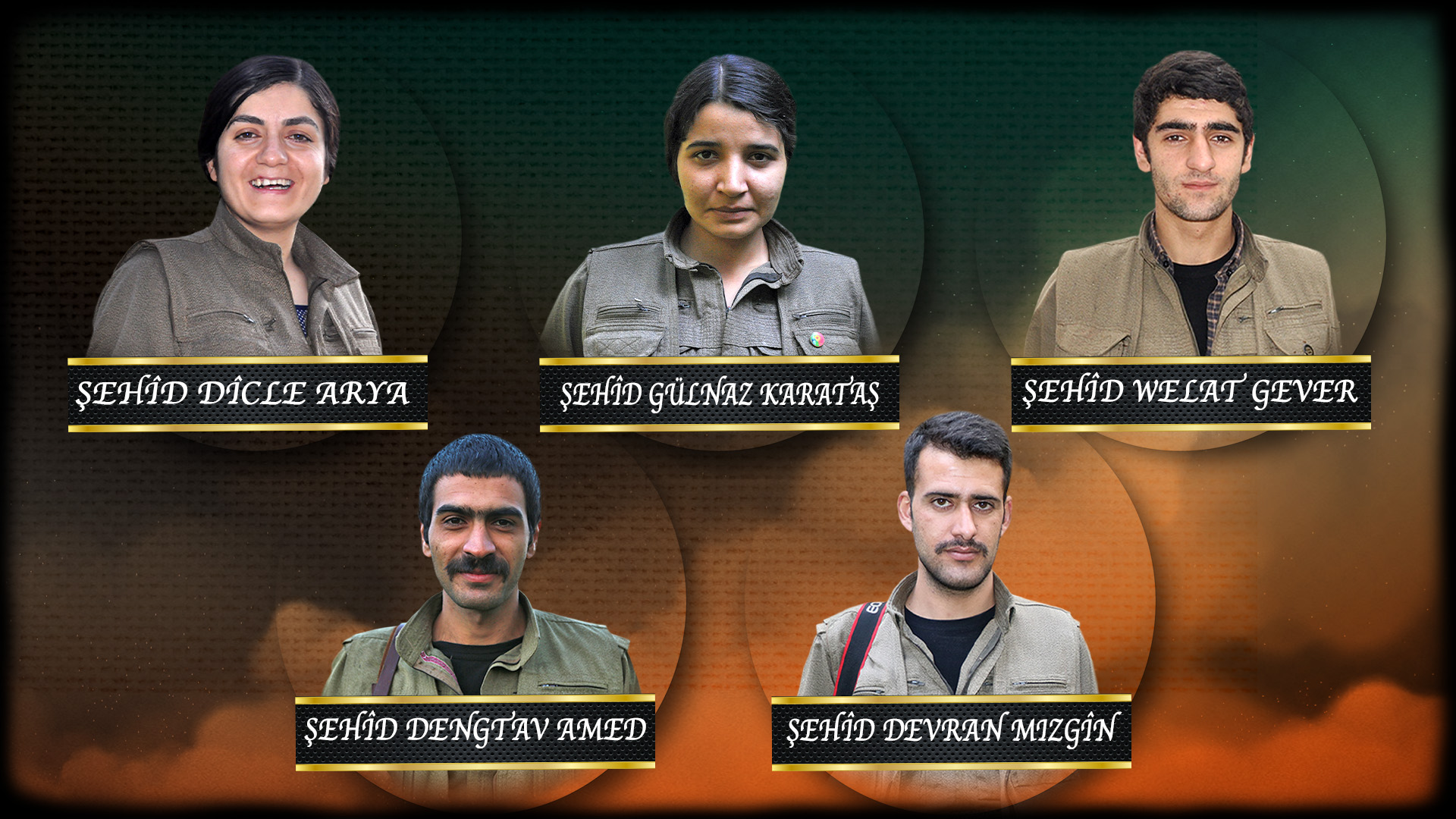 2021 yılının farklı tarihlerinde şehadete ulaşan Kurdistan halkının yiğit evlatları, değerli Apocu militanlar Dîcle, Dengtav, Devran, Gülnaz ve Welat yoldaşlarımızı saygı ve minnetle anıyoruz.
