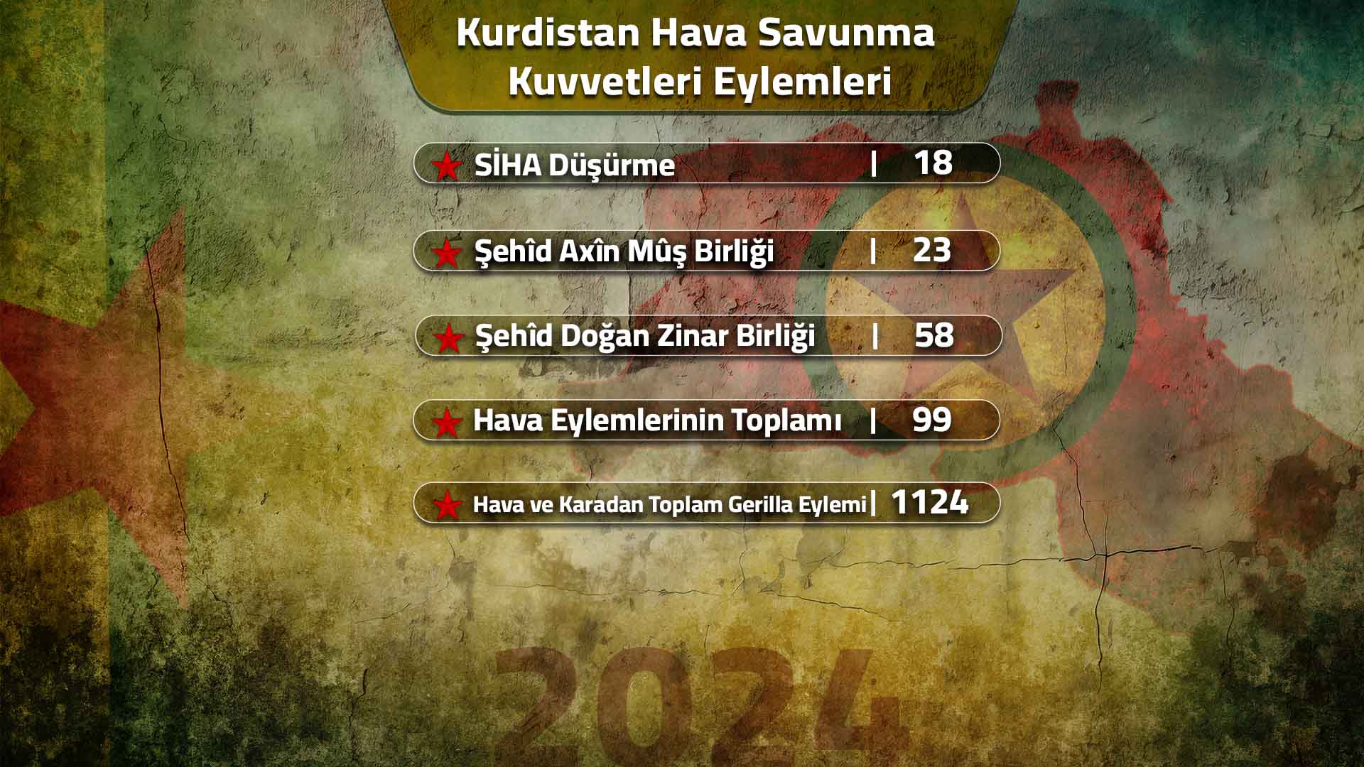 Kürt halkı ve Kurdistan Özgürlük Hareketi, 2024 yılına mücadele ile giriş yapmış ve yıl boyunca aralıksız süren düşman saldırıları karşısında direnişini yükselterek sürdürmüştür.